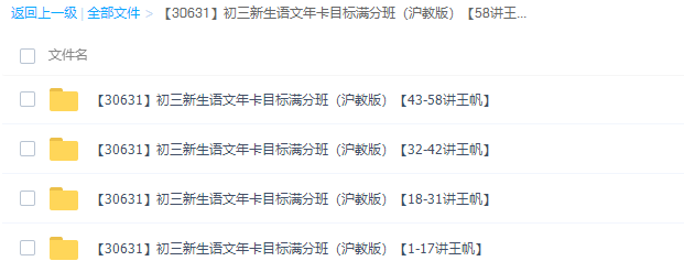 此课件来自王帆初三新生语文年卡目标满分班(沪教版58课时合集),容包括:重点现代文精讲(苏州园林、风筝、故乡、孔乙己、繁星、春水、差不多先生传…等等)、文言文(世说新语、湖心亭看学﹑答谢中书书、记承天夜游…等等)。