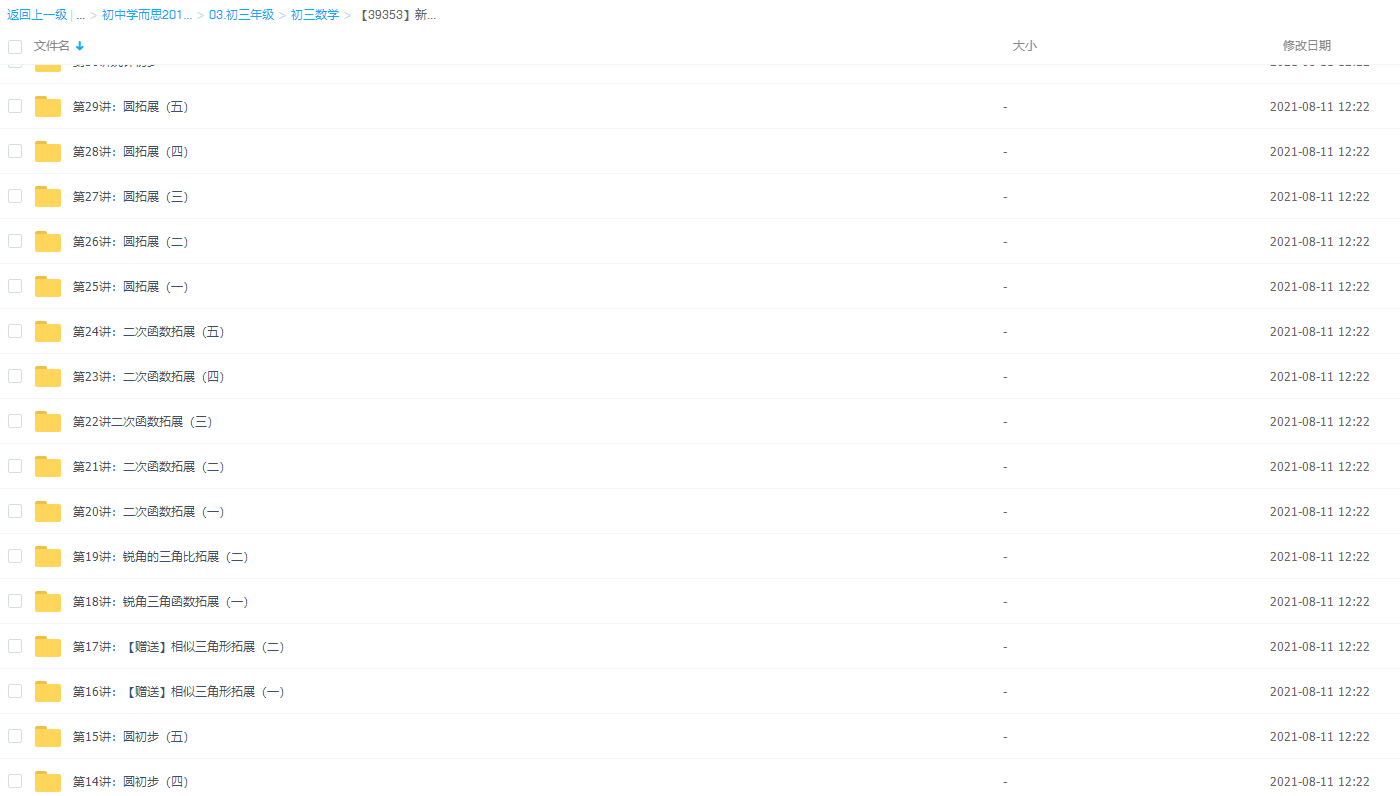此课件来自学而思网校,【39353】新初三数学年卡尖子班(上海沪教版)【朱韬-64讲】,包含视频课程和讲义资料 。此课件的主要内容包括:几何变换(中考必考难点真题精讲)、正多边形和圆与圆中的计算知识点、二次函数的实际应用等等视频。