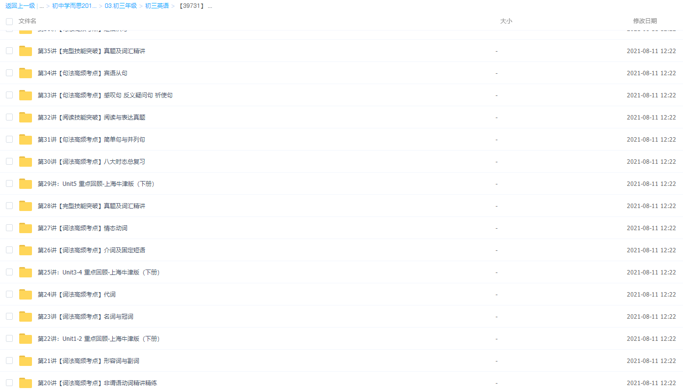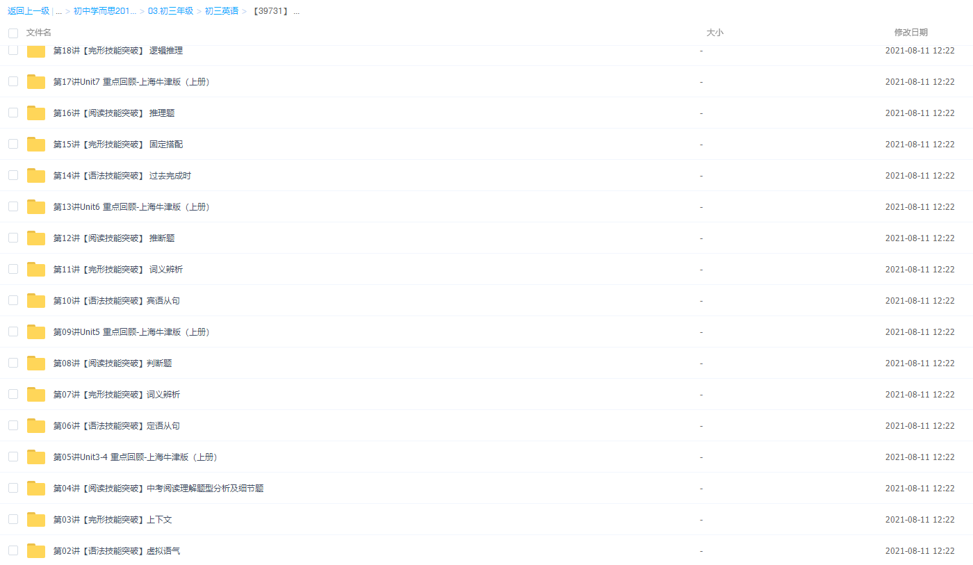 此课件来自学而思网校,【39731】 新初三英语年卡尖子班(上海牛津版),包含视频课程和讲义资料 。此课件的主要内容包括:中考真题精讲、三大从句综合、阅读与表达真题、中考阅读理解题型分析及细节题、非谓语动词精讲精练、应用文书信(回信)写作模板等视频