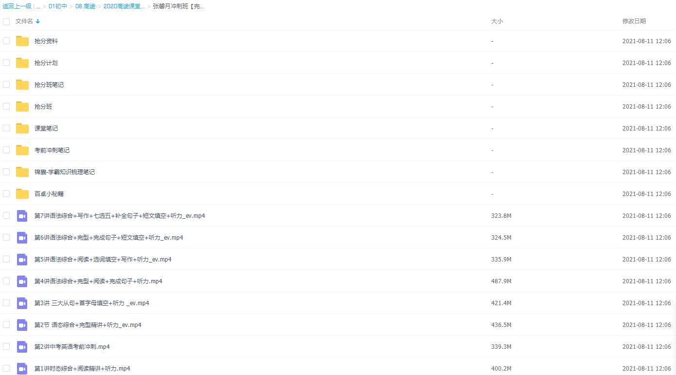 此课件来自高途课堂,高途2020中考张馨月英语决胜冲刺抢分班 ,包含视频课程和讲义资料 。 此课件主要内容包括: 时态综合+阅读精讲+听力、语态综合+完型精讲+听力、三大从句+首字母填空+听力、语法综合+完型+阅读+完成句子+听力、语法综合+阅读+选词填空+写作+听力、语法综合+完型+完成句子+短文填空+听力等视频