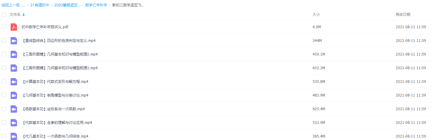 此课件来自有道精品课,有有道新初三数学孟亚飞亡羊补牢【完结】班,包含视频课程和讲义资料 。此课件主要知识点包括:【直线型综合】四边形的性质判定与定义、【三角形图模】几何基本知识与模型梳理、【计算基本功】代数式变形与解方程、【几何基本功】倒角模型与分类讨论、【代数基本功】含参的理解与讨论应用等视频