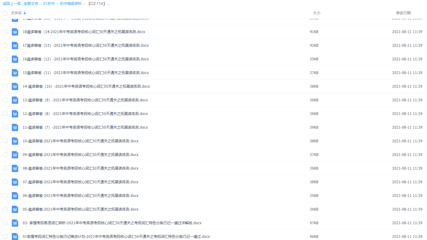 备战2021年中考英语考纲核心词汇50天通关之拓展读练测