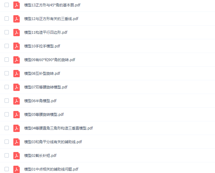 在看到数学题后,我们脑子里要想到相对应的模型,代数式有代数式的模型,几何也有几何的模型,灵活运用,课后多做习题,勤奋才能提高成绩。只要吃透中考数学29个几何模型文档,中考的时候就能提高分数。