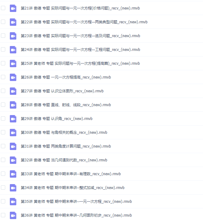 此课件来自简单学习网,傲德初一数学满分冲刺上学期课程。此课件主要知识点包括:有理数的初步认识、有理数加减法、有理数乘除法、有理数的乘方、科学记数法与有效数字、代数式、认识整式、整式的加减、整式加减突破、数轴上的问题、规律探究(数列与循环)、规律探究提高篇、从算式到方程、解一元一次方程、实际问题与一元一次方程、认识立体图形、直线、射线、线段、与角相关的概念、两类角度计算问题、当几何遇到代数、期中期末串讲。
