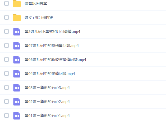 此课件来自学而思网校,王运斌初二数学2021年春季班全国版视频课程。此课件主要知识点包括:三角形的五心、几何中的定值问题、几何中的轨迹与最值问题、几何中的特殊角问题、几何不等式和几何最值。
