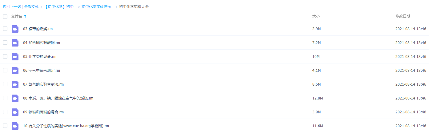 初中化学实验演示视频大全1-10镁燃烧氧气的实验室制法有关分子性质,化学实验是个非常重要的考点,帮助学习!