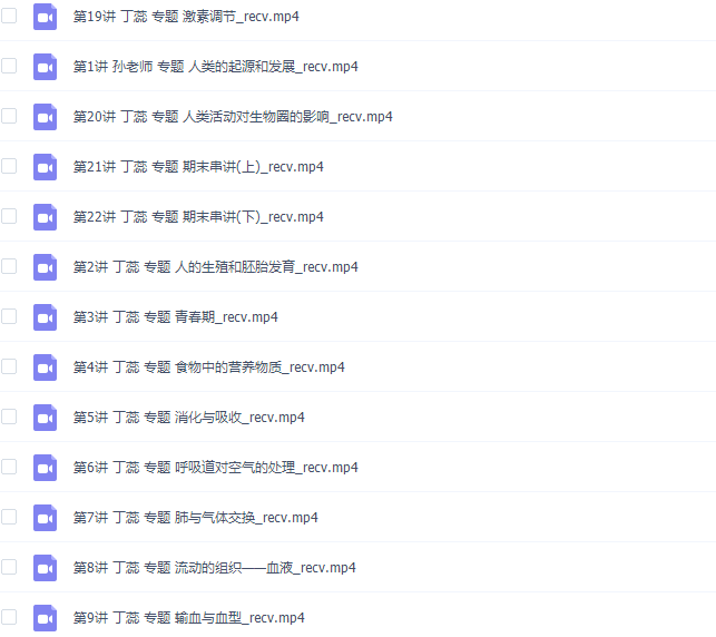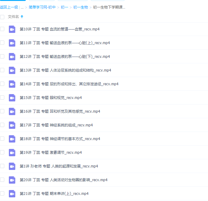 此课件来自简单学习网,初一生物同步提高下学期课程。此课件主要知识点包括:人类的起源和发展、人的生殖和胚胎发育、青春期、食物中的营养物质、消化与吸收、呼吸道对空气的处理、肺与气体交换、流动的组织——血液、 输血与血型、血流的管道——血管、输送血液的泵——心脏、人体泌尿系统的组成和结构、尿的形成和排出、其它排泄途径、眼和视觉、耳和听觉及其他感觉、神经系统的组成、神经调节的基本方式、人类活动对生物圈的影响、期末串讲。