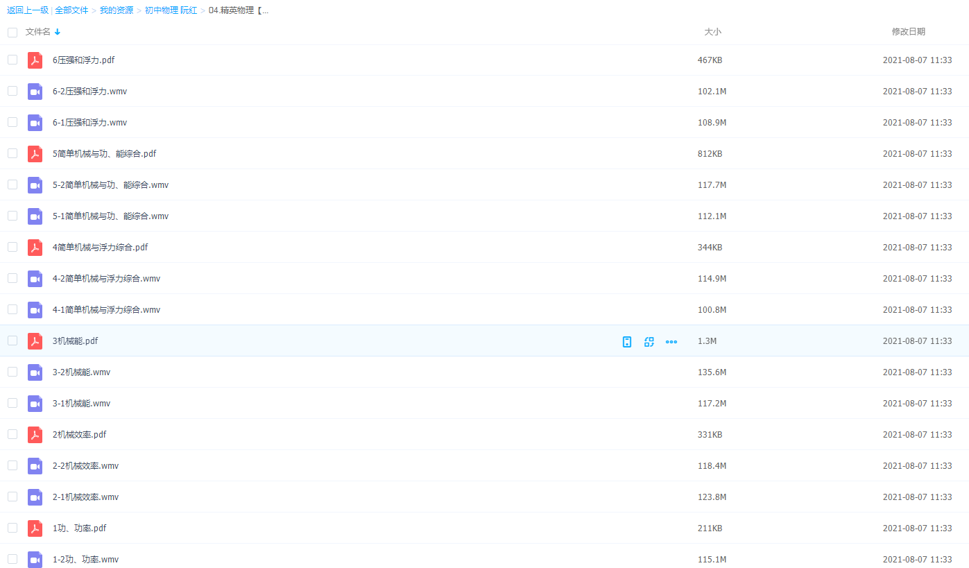 初中物理阮红精英物理功能篇之机械效率、功和能,这个需要你背公式咯,首先自己要记住,其他运用起来就要动脑筋了!