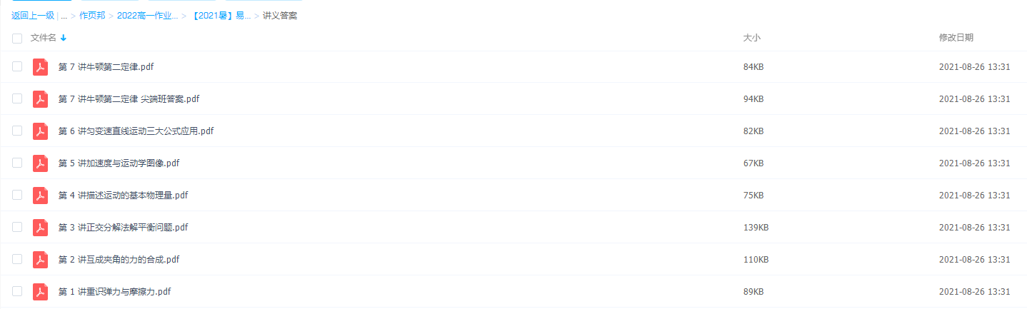此课件来自作业帮网校,高一胡婷物理尖端班视频课程,包含视频课程和讲义资料。 主讲胡婷老师善于挖掘学生思维盲区,将繁琐步骤总结为技巧大招,让学生不自觉爱上课堂。此课件主要知识点包括:匀变速直线运动三大公式应用、加速度与运动学图像、描述运动的基本物理量、牛顿第二定律、重识弹力与摩擦力等视频。