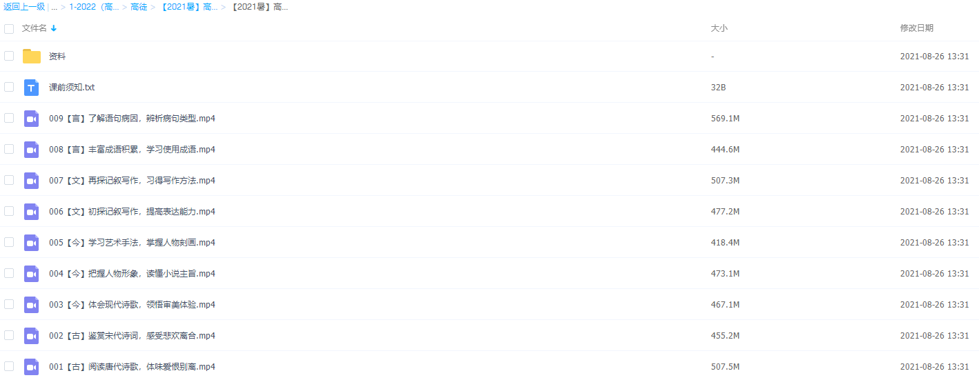 此课件来自高途课堂,2021堂高一语文陈瑞春暑假班,包含视频课程和讲义资料 。主讲陈瑞春老师总结6类诗歌鉴赏、14套文言文答题模板、32种阅读题型模板,以及18条语文作文高分黄金法则。此课件主要知识点包括:阅读唐代诗歌,体味爱恨别离、鉴赏宋代诗词,感受悲欢离合、体会现代诗歌,领悟审美体验、把握人物形象,读懂小说主旨、学习艺术手法,学握人物刻画、初探记叙写作,提高表达能力、再探记叙写作,习得写作方法、丰富成语积累,学习使用成语和了解语句病因。 辨析病句类型。