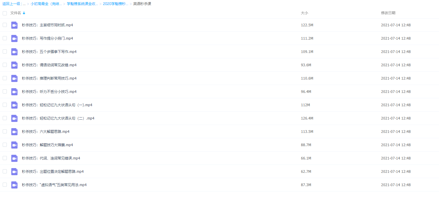 英语课程来了,真的是考试必备的学习资料!想要快速提分,那么你就一定要好好学一下这个课程,视频内容大全!