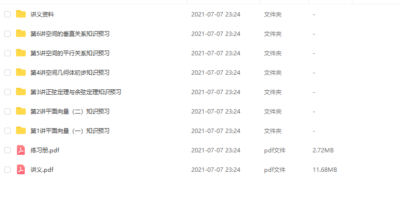 本课件包含讲义资料和视频教程,可以根据知识点结合视频学习,数学一定要多多地做练习,熟悉了做题感觉弄懂了其中的概念关联,学习起来数学就会更加容易了。