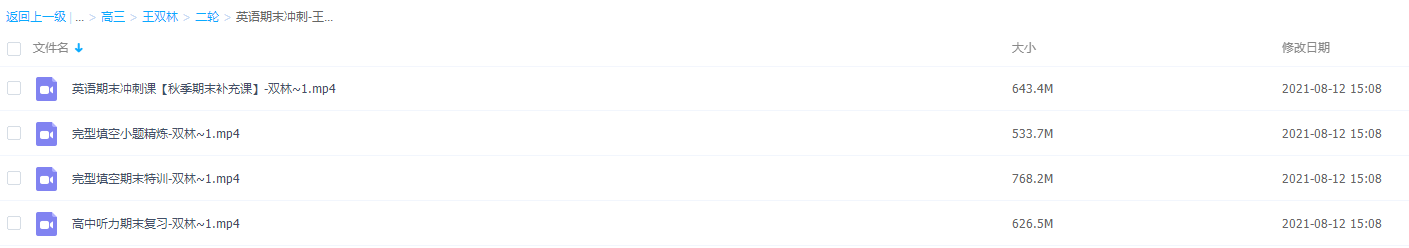 相信很多的孩子都不知道该怎样在期末考试中获得更好的成绩,尤其是男孩,教育盘小编为各位同学整理了高三王双林英语期末冲刺,希望通过给你们分享双林老师英语的答题技巧,有个好成绩过大年。让资源目录如下: