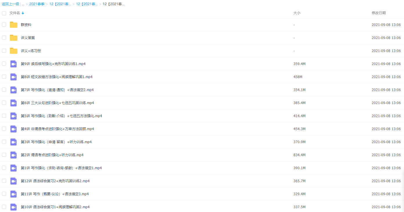 此课件来自学而思网校、2021学而思高三昆尼英语寒假二轮复习(上)目标130+直播班视频课程。主讲昆尼老师其风格是善于从基础到深入学习。此课件知识点主要包括:写作强化(求助-咨询-感谢)+语法填空、谓语考点进阶强化+听力训练、写作强化(申请留言)+听力训练、非谓语考点进阶强化+万幸方法回顾、写作强化(致歉-个绍)+七选五方法强化、三大从句进阶强化+七选五巩固训练、写作强化(逾请-通知)+语法填空、短文改错方法强化+阅读理解巩固、读后续写强化+完形巩固训练、综合复习+阅读理解巩固、写作(概要-议论)+语法填空和语法综合复习+完形巩固训练等视频