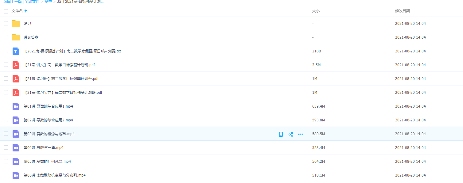 :JS【2021寒-目标强基计划】高二数学寒假直播班 6讲 刘雯 声明:本站资源来自会员发布以及互联网公开收集,不代表本站立场,仅限学习交流使用,请遵循相关法律法规,请在下载后24小时内删除。 如有侵权争议、不妥之处请联系本站删除处理! 请用户仔细辨认内容的真实性,避免上当受骗!