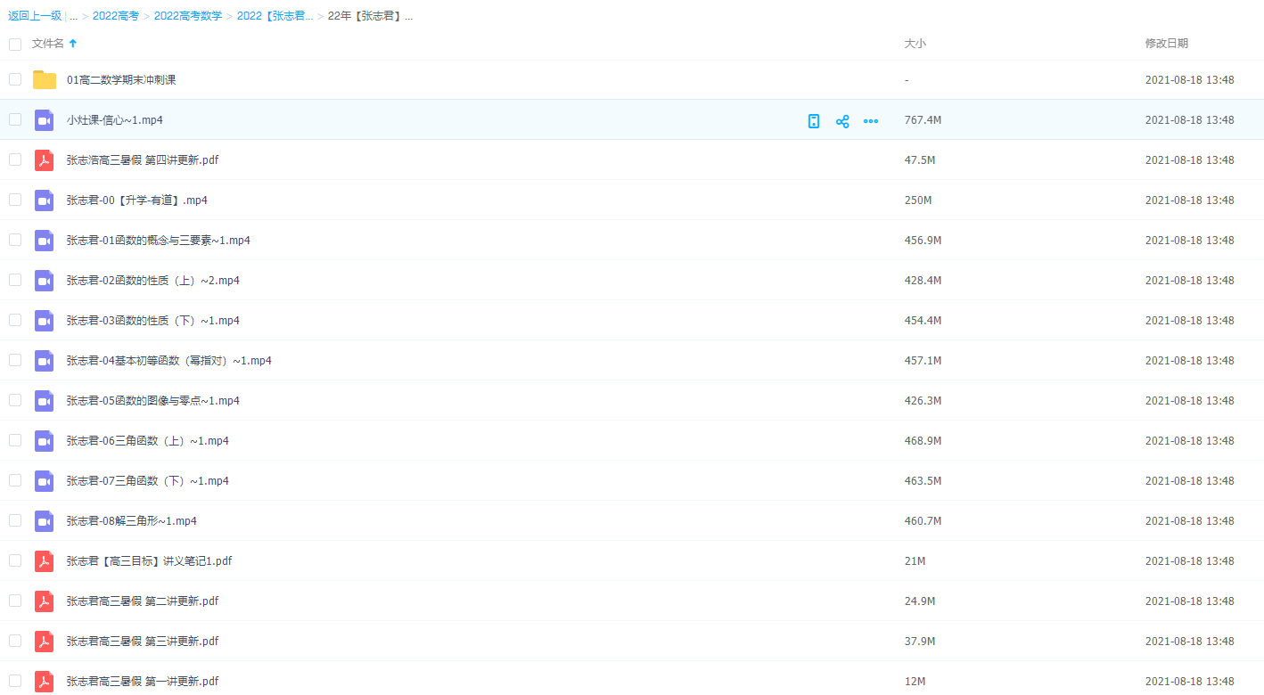 本课件是张志君老师高中数学全年班课程资源,里面包含详细地视频资源和讲义资料,同学们可以根据自己的需求认真学习一定有所收获!