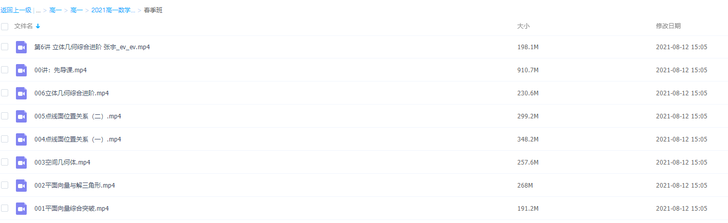 此课程来自于高途课堂,2021年高一数学张宇春班直播课,课程知识点包括平面向量综合突破、平面向量与解三角形、点线面位置关系和立体几何综合进阶等视频。他讲课体量不是很多,技巧性很强。他的课程适合有一定基础的同学,内容覆盖较全面,技巧性、思维性很强。最最重要的是:考完视频后,一定要吸收内化,然后做题、做题、大量做题,再去反馈知识点。把不会的题目的思路、不理解的或者理解错的知识点全部记住,争取后续不再错!