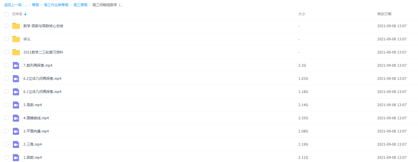 基础差的同学,到了高三难免会慌张,手足无措却也不知道该从何学起。一页页翻看数学书,心里要了解高中三年数学都讲了哪些内容。遇到公式以及名词定义就抄下来,方便以后背诵,公式是基础,所以数学基础差就一定要背诵公式,这样才能更好的解决问题。此课件来自作业帮网校,2021作业帮高三何晓旭数学(理数985)完结,包括课程视频回放以及资料讲义。寒假班主要讲的知识点有函数、平面向量、立体几何等视频。