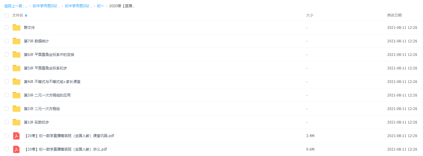 此课件来自学而思网校,2020寒【直播课】初一数学菁英班朱韬,此课件主要知识点包括实数、不等式与不等式组、平面直角坐标系中的变换和二元一次方程组等视频内容。