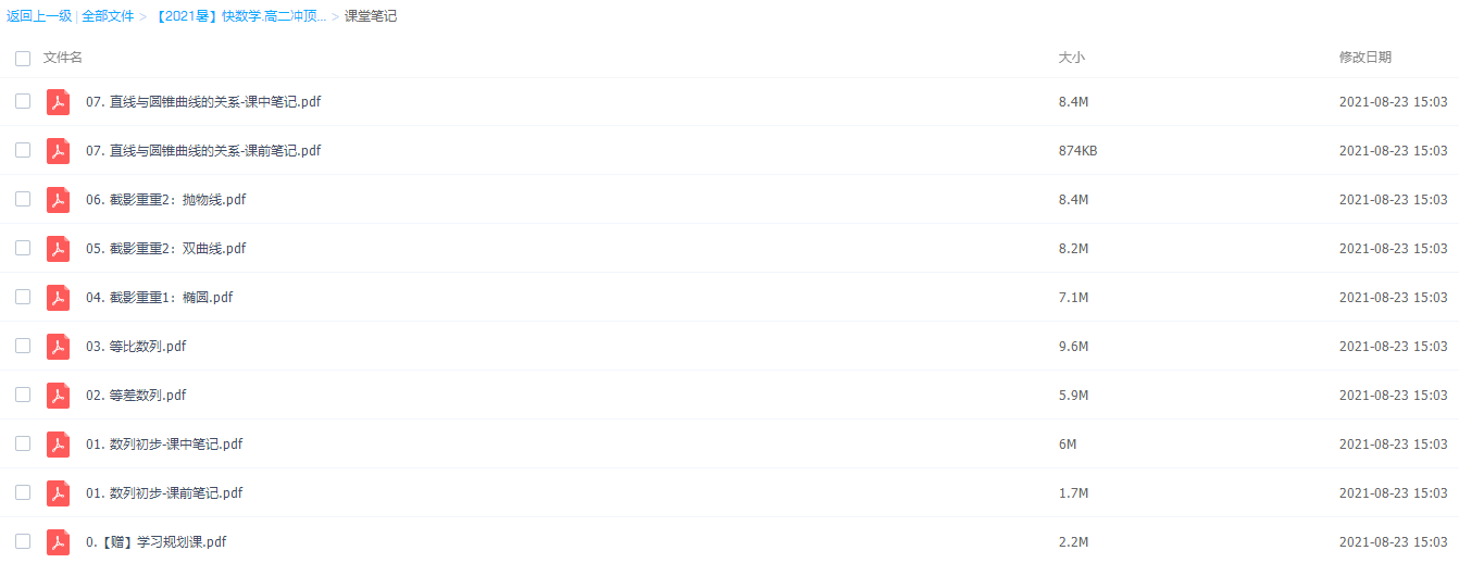 谭梦云作业帮2021暑假高二数学暑假冲顶班(通用版数列和圆锥曲线)