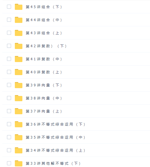 此课件来自学而思网校,高中奥数四阶高一全国高中数学联赛班陈晨完结。此课件主要知识点包括:整数基本性质、数论基础、完全剩余、唯一分解和模算术、不定方程、高斯函数、数论复习、均值柯西与排列、其他解不等式、不等式综合运用、向量、复数、组合。