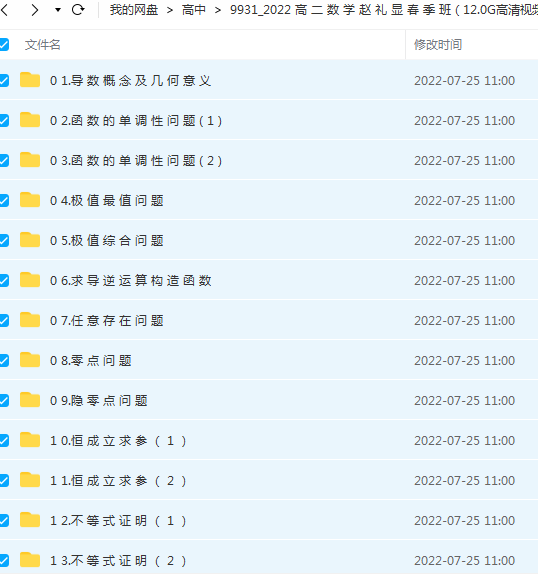 2022 高 二 数 学 赵 礼 显 春 季 班 课 程