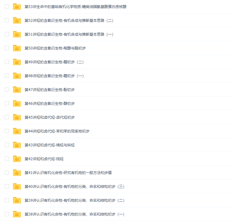 此课件来自学而思网校,高二化学选修5预习高清视频课程。此课件主要知识点包括:认识有机化合物-有机物的分类、命名和结构初步、认识有机化合物-研究有机物的一般方法和步骤、烃和卤代烃-烷烃、烃和卤代烃-烯烃与炔烃、烃和卤代烃-苯和苯的同系物初步、烃和卤代烃-卤代烃初步、烃的含氧衍生物-醇初步、烃的含氧衍生物-酚初步、烃的含氧衍生物-醛初步、烃的含氧衍生物-羧酸与酯初步、烃的含氧衍生物-有机合成与推断基本思路、生命中的基础有机化学物质-糖类油脂氨基酸蛋白质核酸。