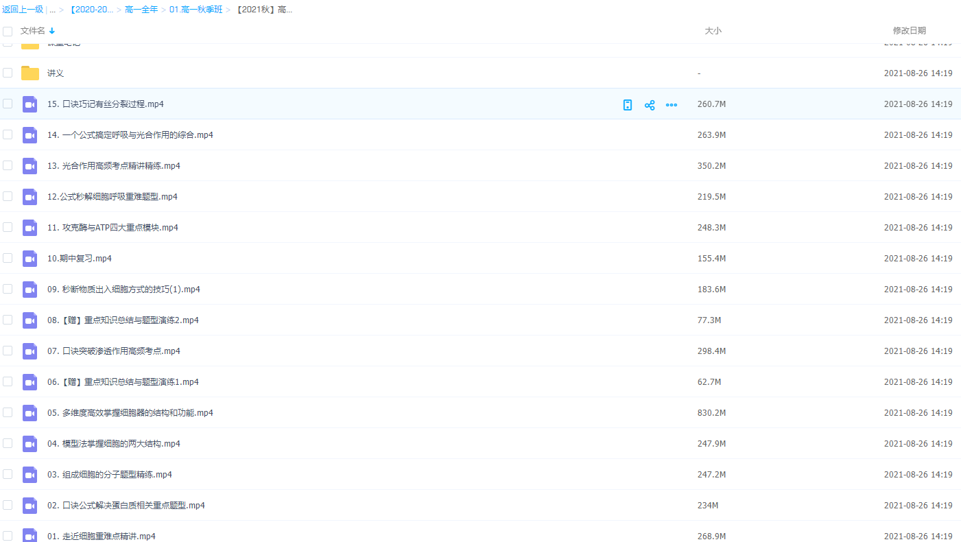 此课件来自作业帮网校,邓康尧高一生物2021尖端班秋季班课程在课程中传递给学生的是真正学懂生物的方法,不主张死记硬背,逻辑与技巧齐飞,在理解基础概念的同时,为学生总结解题方法,提高做题效率。此课件主要知识点包括:有丝分裂过程、光合作用的综合、攻克酶与ATP四大重点模块等视频