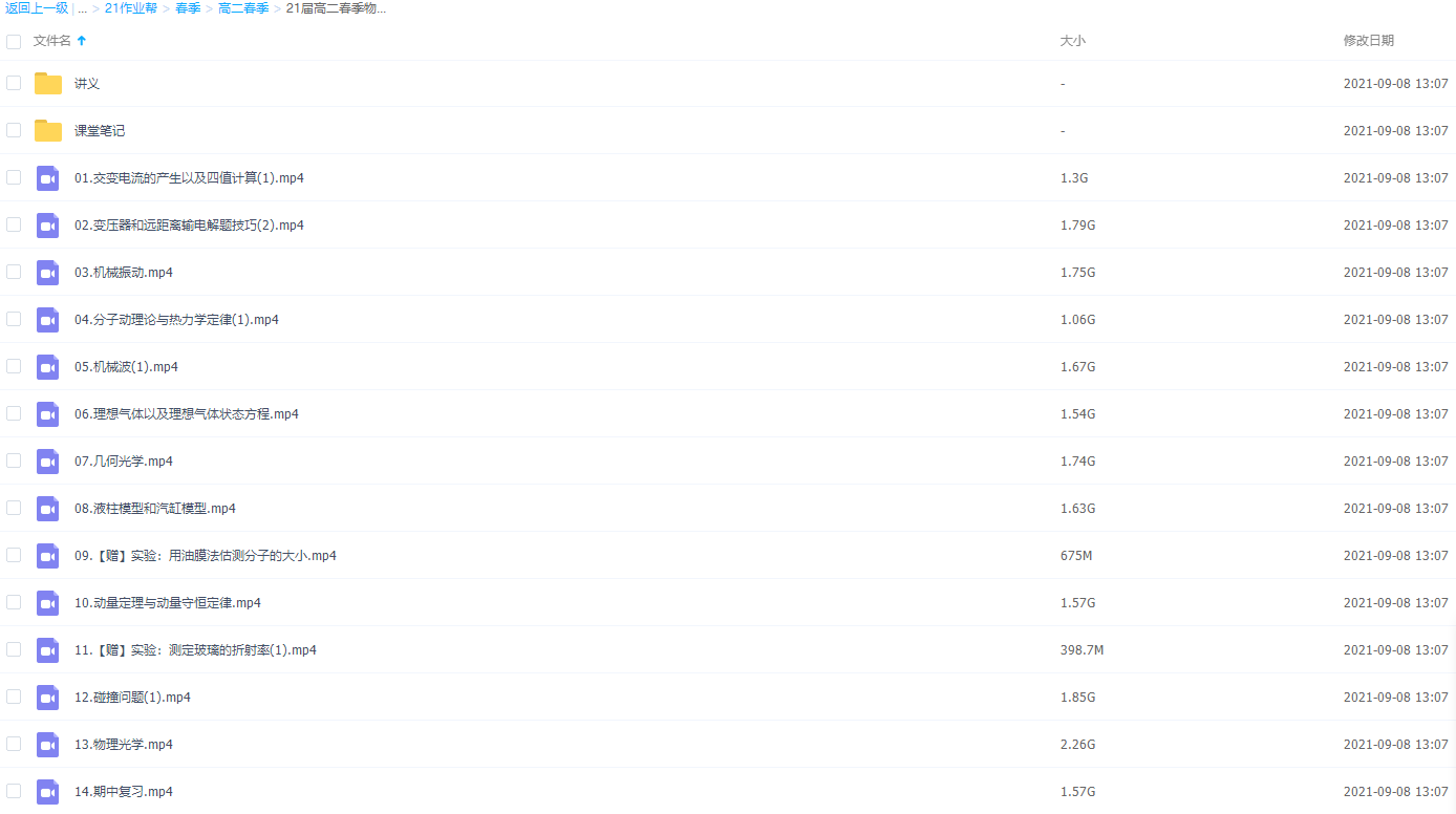 此课件来自作业帮网校,2021作业帮高二春季物理孙竞轩尖端直播课,包括课程视频回放以及资料讲义。主讲孙竞轩老师熟悉全国考纲,熟悉全国高考重难点,授课直击考试,课程设计注重逻辑,注重体系搭建,善于根据学生认知程度进行启发式教学。了解学生学习痛点,善于化繁为简,技巧提分,常常让学生感叹有被“打通任督二脉”的畅快学习体验。此课件知识点主要包括:实验-测定玻璃的折射率、实验-用油膜法估测分子的大小、液柱模型和汽缸模型、理想气体以及理想气体状态方程、分子动理论与热力学定律、机械波等视频