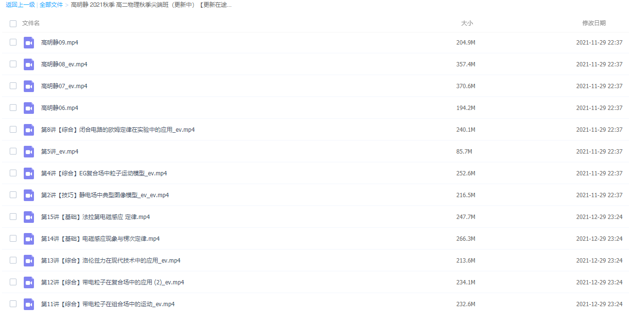 此课件来自高明静2021秋季高二物理秋季尖端班更新15讲,此课件主要知识点包括:静电场中的典型力学模型、静电场中典型图像模型、EG复合场中粒子运动模型、带电粒子在组合场中的运动、带电粒子在复合场中的应用、洛伦兹力在现代技术中的应用、电磁感应现象与楞次定律、法拉第电磁感应定律,已经更新15讲拉