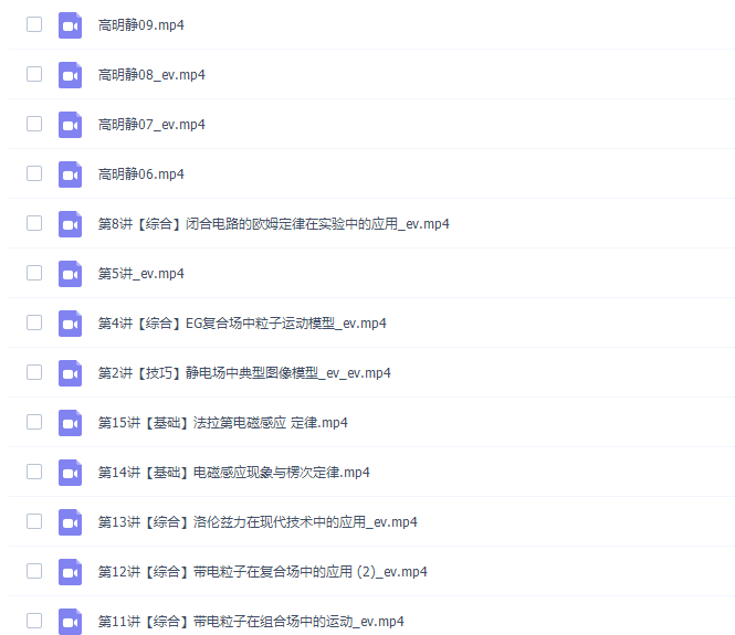 此课件来自高途课堂,高明静高二物理2021年秋季A+班课完结。此课件主要知识点包括:静电场中的典型力学模型、静电场中典型图像模型、EG复合场中粒子运动模型、带电粒子在组合场中的运动、带电粒子在复合场中的应用、洛伦兹力在现代技术中的应用、电磁感应现象与楞次定律、法拉第电磁感应定律,洛伦兹力在现代技术中的应用、电磁感应现象与楞次定律、法拉第电磁感应定律
