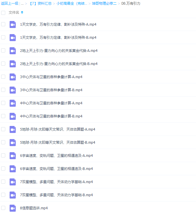 此课件来自腾讯课堂,坤哥物理必修二万有引力视频课程。此课件主要知识点包括:天文学史、万有引力定律、割补法及特殊、地上天上引力-重力向心力的关系黄金代换、中心天体与卫星的各种参量计算、宇宙速度、变轨问题、卫星的相遇追及、双星模型、多星问题、天体动力学基础。
