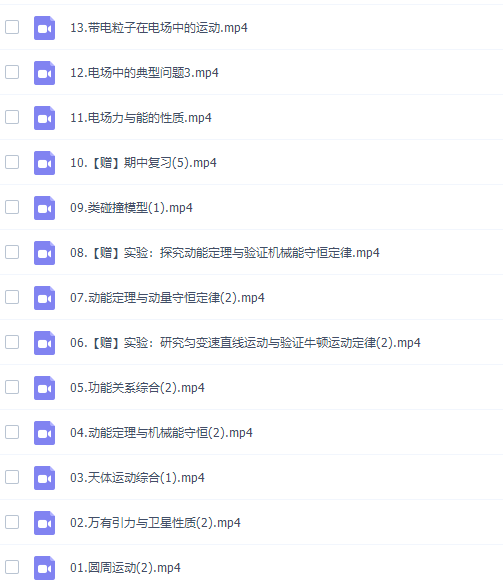 此课件来自作业帮网校,孙竞轩高三物理2021秋季尖端班课程完结。此课件主要知识点包括:圆周运动、万有引力与卫星性质、天体运动综合、动能定理与机械能守恒、功能关系综合、类碰撞模型、电场力与能的性质、带电粒子在电场中的运动、磁场与磁场力、带电粒子在磁场中的运动、楞次定律与法拉第电磁感应定律等视频。