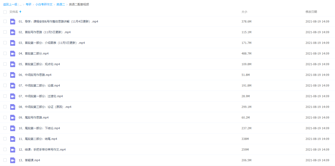 本课件是小白考研英语二作文冲刺特训配套视频学习课程,里面有很全面的讲解视频资料,包含了很多知识点学习,一定有你需要的!