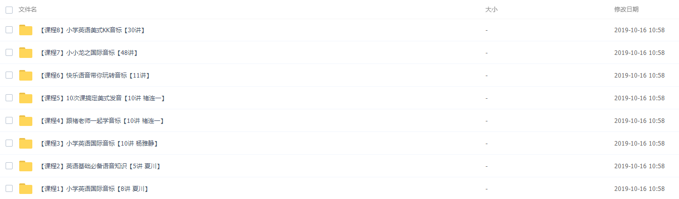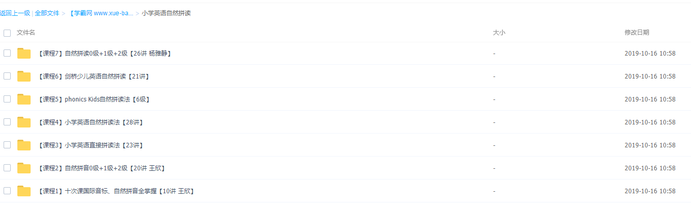 此课件主要包含两大模块,一是小学英语自然拼读、二是小学英语国际音标。其中小学英语自然拼读包含:十次课国际音标、自然拼音全掌握【10讲】、自然拼音0级+1级+2级【20讲】、小学英语直接拼读法【23讲】、小学英语自然拼读法【28讲】、phonics Kids自然拼读法【6级】、剑桥少儿英语自然拼读【21讲】、自然拼读0级+1级+2级【26讲】等视频