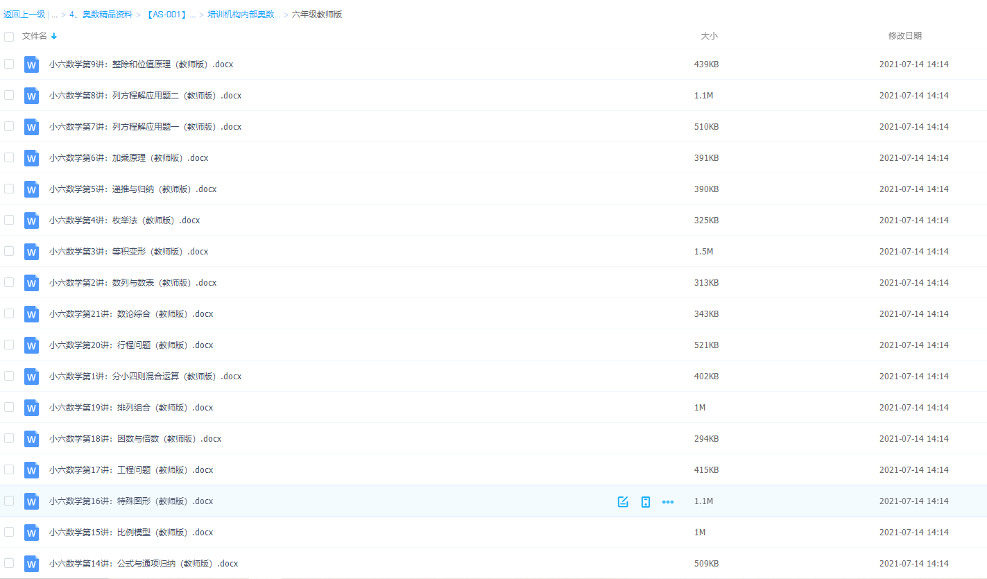 优胜教育内部培训机构内部奥数教材6年级视频讲解大全