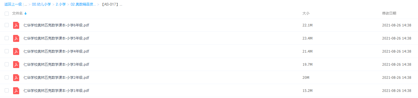 仁华学校的前身是“人大附中华罗庚数学学校”,是名气最大的奥数学校之一。教育盘小编今天给大家带来的是仁华学校奥林匹克数学课本电子版1-6年级全套,这是一套有效克服学生奥数畏难情绪的书,家长们赶紧收藏!