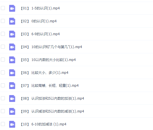 此课件来自乐乐课堂,小学数学一年级上册(I)视频课程。此课件主要知识点包括: 0的认识、1-5的认识、6-9的认识、10的认识和”几个与第几"、10以内数的大小比较、比较大小、多少、比较高矮、长短、轻重、认识加法和5以内数的加法、认识减法和5以内数的减法6-10的加减法。