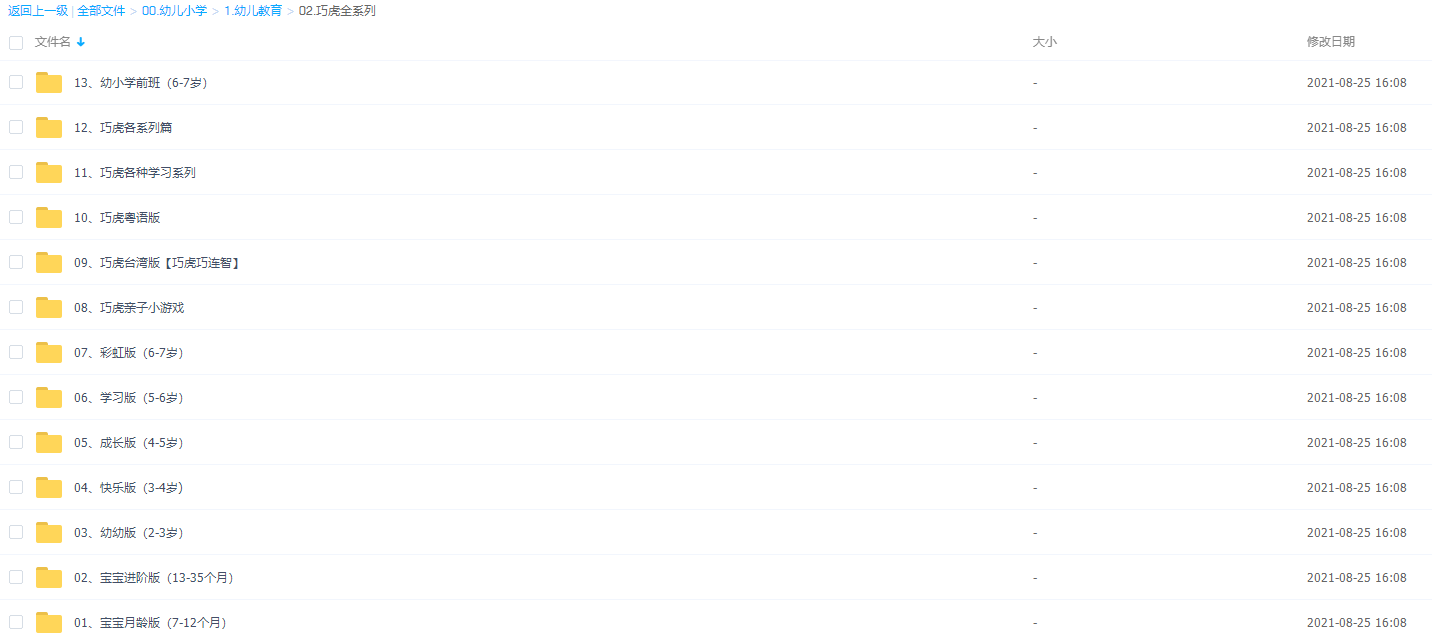 巧虎是每个家庭宝宝必备的早教素材了,如果你宝宝有2岁了,还不知道,或者没听说过这么好的资源,只能说你对宝宝的教育关注度极低了。根据孩子的年龄特点分为月龄版(7月龄开始到2岁)、幼幼版(2-3岁)、快乐版(3-4岁)、成长版(4-5岁) 、学习版(5-6岁)、彩虹版(6-7岁),星空版(7岁-8岁)。中国大陆版的分龄有所不同。巧虎分大陆版和台湾版两种,大陆版叫乐智小天地,台湾版叫巧连智。二者都是普通话发音。大陆版在台版的基础上,加入一些适合国内教育的环节,更贴近我们,各有特点。