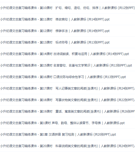 语文学习包含很多内容,小学学好语文很重要,在以后初中的学习中就可以很好地熟悉起来,本课件包含了很多专项训练讲义,可以根据自身能力来做相应的练习。