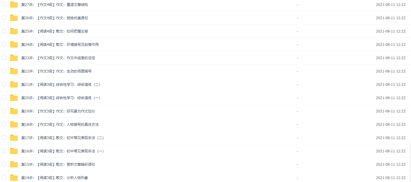 此课件来自学而思网校,【30473】初二新生语文年卡阅读写作班(网校体系)【46讲 王帆】,包含视频课程和讲义资料 。此课件的主要内容包括:议论文:文章分论点的确定及补充、作文:情感类作文的转化、散文:初中常见表现手法、议论文:论证结构及过程的答题 、作文:俯拾优美语句、小说:环境描写的作用与概括人物形象 等视频