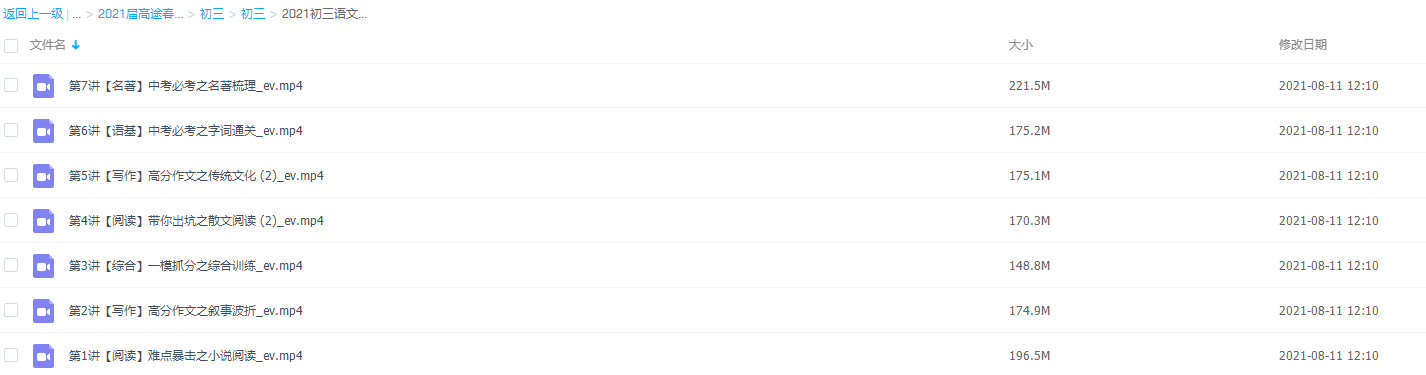 此课件来自高途课堂,高途课堂许天翼初二语文2021春季班。 此课件主要内容包括: 【名著】中考必考之名著梳理、【语基】中考必考之字词通关、【写作】高分作文之传统文化、【阅读】带你出坑之散文阅读、【综合】一模抓分之综合训练、【写作】高分作文之叙事波折、【阅读】难点暴击之小说阅读 等视频