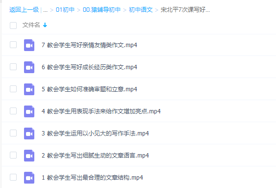 此课件来自猿辅导网校,中考作文宋北平7次课写好中学考场作文,主讲宋北平老师丰富的初中语文教学经验,带领同学们逐步提升自己的作文水平,轻松应对考场作文。此课件主要知识点包括:教会学生写出最合理的文章结构、教会学生写出细腻生动的文章语言、教会学生运用以小见大的写作手法、教会学生用表现手法来给作文增加亮点、教会学生如何准确审题和立意、教会学生写好成长经历类作文、教会学生写好亲情友情类作文。