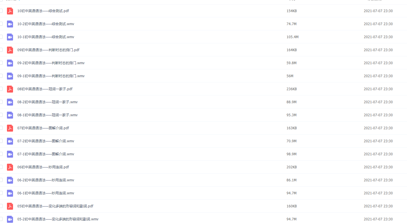 初中英语邹一萍精华网初中全套“一”点即通语法不难学