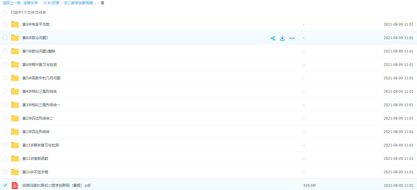 本课件是初二数学创新班暑假课程,里面包含了很多讲义和视频教学课程,有需要的同学快来下载学习吧,一定对学习有所帮助!